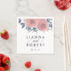 Projetados para coordenar com nosso convite de casamento e nossa coleção de acessórios do Blush Poppies, esses guardanapos florais personalizados em uma paleta colorida de blush e marinho são perfeitos para a hora ou recepção de casamento do coquetel. Design apresenta um conjunto de flores de papoila de aquarela em rosa-pincel, cercadas por folhas e botões em azul marinho empoeirado e verde-caçador esmaecido. Adicione seus nomes e data de casamento em modernas letras azuis da meia-noite embelezadas com traços decorativos.