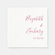 Estes guardanapos de casamento simples e modernos apresentam texto magenta alinhado à margem certa num fundo branco. Adicione os nomes da noiva e do noivo na caligrafia na moda.