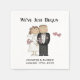 Os guardanapos descartáveis de papel são perfeitos para o janto de recepção de casamento ou ensaio, apresentam noiva e noivo com texto que diz Nós acabamos de começar e tem uma área que você pode adicionar os nomes dos casais e a data do casamento!
