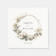 Adicione um toque de charme orgânico e macio à sua recepção de casamento com estes guardanapos de algodão e eucalipto. Este guardanapo de papel apresenta uma coroa rústica e não simétrica de delicadas caixas d'água e eucalipto, personalizada com os nomes da noiva e noiva e a data do casamento abaixo. É uma adição perfeita à sua celebração, infundindo a beleza natural do algodão mole e da aquarela em todos os locais.