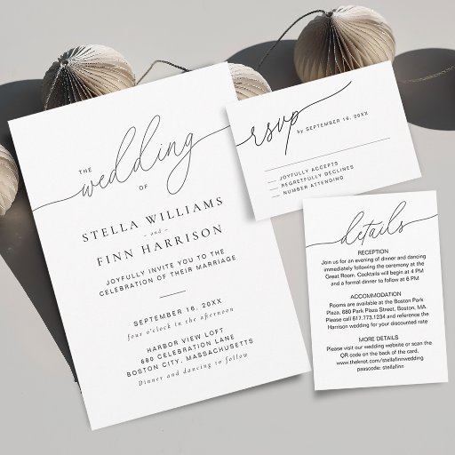 O moderno e minimalista roteiro elegante "aplaude" o amor e a felicidade com guardanapos clássicos de papel tipográfico.