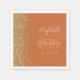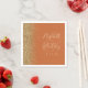 A borda esquerda desses elegantes guardanapos de casamento modernos apresenta um design de brilho dourado. O texto personalizável combina letras pálidas de cor dourada e fontes de impressão coloridas sobre um grande painel e sobre um fundo laranja queimado.