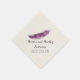Os guardanapos de casamento com uma aquarela inspiraram ilustração de uma pena roxa. Personalize o texto com nomes e data.