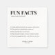 Estes fatos modernos e minimalistas divertidos do casamento são perfeitos para uma recepção de casamento minimalista. O simples design preto-e-branco apresenta uma tipografia industrial única, com estilo boho moderno. Personalizável em qualquer cor. Mantenha o design mínimo e elegante, como está, ou personalize-o adicionando seus próprios gráficos e trabalhos de arte. Personalize os guardanapos com os nomes da noiva e do noivo e alguns fatos divertidos sobre eles. Estes guardanapos podem ser usados para a recepção de casamento, janto de ensaio, festa de noivado e muito mais!