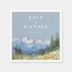 Elenques elegantes guardanapos de papel de casamento de flor silvestre montanhesa aquarela azul empoeirado podem ser personalizados com suas informações em tipografia moderna. Projetado por Thisisnotme©