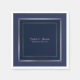 Um elegante guardanapo de casamento azul escura com uma borda dupla de prata.