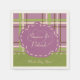 Um fundo de xadrez em tons de asteria roxo, verde-sábio, bege-leiteiro e marrom-escuro é decorado com um painel de sotaque em verde e um rosa com nomes de amostra e uma data que você pode personalizar para seu evento especial. Tanto o painel rosa quanto o sotaque têm uma aparência bem alinhada para adicionar um pouco de charme caseiro ao design. Estes guardanapos adicionam um talento suave e bonito a qualquer janto de recepção de casamento ou ensaio do jardim do país. Este guardanapo vai combinar com qualquer outro produto de Casamento do Jardim do País para que você possa facilmente fazer seu evento tão coordenado quanto desejar.