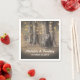 Os guardanapos personalizados do casamento russo, com um encantador cenário de casamento em áreas de floresta ao ar livre, luzes brilhantes de borda, um coração romântico esculpido no tronco de uma árvore com suas iniciais e textos modernos.