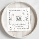 Guardanapos de casamento inspirados retroativamente para a sua festa de noivado, janto de ensaio, recepção e outros eventos de casamento com uma trendy wavy frame adornada com arcos coquetes, ilustrações feitas à mão e desenhadas por brancos de um coração e óculos de vinho, e os nomes da noiva e do noivo em um roteiro manuscrito.