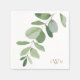 Eucalyptus Stem Greenery Casando Cocktail Napkins. Fundo Branco. Monograma Dourado.