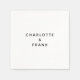 Um guardanapo de papel quadrado branco com os nomes do recém-casado em preto. Digite TODOS os BONÉS para alcançar esse efeito com esta fonte na moda arredondada moderna. Personalize o espaçamento das letras conforme necessário. Adicione seu próprio monograma, nome ou foto para criar um design personalizado. Design moderno minimalista para o seu casamento.