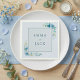 Aumente sua celebração com este elegante guardanapo de casamento, lindamente adorado com flores românticas de aquarela em delicadas tonalidades azuis e verde macio. A paleta de cor suave e o quadro botânico pastel rodeiam graciosamente os nomes da noiva e do noivo, mostrados em uma fonte serif clássica para um toque refinado de vintage. Perfeito para uma festa elegante ou decoração de mesa de jardim, este guardanapo floral azul dobra como uma encantadora lembrança ou um pensativo momento de casamento de outono. Sua combinação de estilo refinado e detalhes personalizados garante que sua mesa de casamento se sinta sofisticada e convidativa para cada convidado.