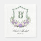 Estes bonitos guardanapos de almoço a aquarelas, com uma crista com flores roxas e brancas multicêntricas e verde natural, as iniciais da noiva e do noivo e a data do seu casamento seriam perfeitos para a sua recepção de casamento. São tradicionais e clássicos enquanto são frescos, modernos e contemporâneos. Eles serão lindos nas mesas.