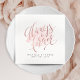 Manuscrito escrito "sempre e para sempre" na cor falsa da folha de ouro rosa em fundo branco cor-de-água rosa, elegante e na moda, personalize-o com nomes de casais e data, guardanapos personalizados de papel de casamento do excelente. Veja todas as peças correspondentes na coleção.
