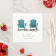 Teal Adirondack preside guardanapos brancos de recepção de casamento. Decoração da casa de praia de Verão. Imagem copyright Marg Seregelyi Fotografia.