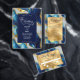 Um guardanapo com ouro falso, design marmoreado azul e branco.