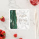 Estes elegantes guardanapos de casamento modernos apresentam uma esmeralda cor d'água verde agate design aparada com falsa brilho dourado. Personalize facilmente a data preta em uma cinza e fundo de mármore branco, juntamente com os nomes da noiva e do noivo em caligrafia dourada sobre uma grande e pálida serra e cinza.