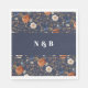 As iniciais da noiva e do noivo são o foco central desta design. Apoiado por um marinho azul empoeirado e belos florais de aquarelas do País. Elegante Dusty Blue Orange Iniciou Casamento Napkins