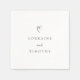 Os guardanapos de casamento modernos, com um design simples com um coração acima dos seus nomes em letras elegantes e fontes serif.