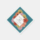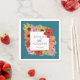 Adicione um livro de histórias à decoração do seu casamento com estes guardanapos de papel impressos personalizados com ilustrações de flores em negrito cores quentes de amarelo, laranja, vermelho e rosa contra um fundo azul-lacre profundo.