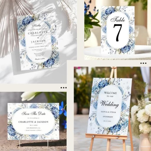 Elegant Blue Wildflowers Watercolor Floral WeddingCriado por Zakreva Olha