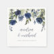 Guardanapos de Recepção / Chuveiro de Noiva de Buquê de Aquarela com Flores Silvestres e Folhagens Azul-Marinho Elegantes. Este design apresenta um lindo buquê de aquarela floral azul escuro acima dos seus nomes no centro. Os nomes do casal são escritos em um estilo de caligrafia moderna. Edite seus nomes, data e local do casamento. Você pode alterar a cor do seu texto e redimensionar e mover seu design.