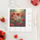 Bonito óleo vermelho pintado com o sol iluminando-os. Tons vermelhos e verdes. Guardanapos de papel personalizados para o janto de ensaio, a recepção de casamento ou o chá de panela. Sinais de noiva e noiva e data de casamento.