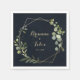 Estes guardanapos de papel de casamento azul-esverdeados de ouro geométrico são perfeitos para uma recepção de casamento moderna. A design apresenta lindas folhas verdes pintadas manualmente em um fundo azul escuro, enfeitando uma armação geométrica dourada. Faça destes guardanapos seus, incluindo os nomes da noiva, do noivo e da data do casamento. Estes guardanapos podem felicitar uma recepção de casamento, janta de ensaio, festa de noivado e muito mais!