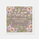 Flores de cor d'água roxas e luzes de cordas brilhantes em um guardanapo de papel para eventos de design de madeira rústica. Personalize com os nomes dos casais e a data do casamento. Entre em contato conosco para obter ajuda sobre a personalização ou produtos correspondentes.