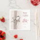 Estes guardanapos de papel de casamento apresentam uma fita cor-de-rosa pincelada com anéis de casal bem como texto de cor púrpura. Para mais personalização deste design, clique no botão "Personalizar". Itens correspondentes também estão disponíveis.