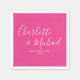 Guardanapos de casamento modernos rosa vibrante com nomes no estilo de assinatura, esses guardanapos modernos podem ser personalizados com suas informações em letras elegantes. Criado por Thisisnotme©