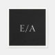 Os guardanapos negros modernos com um design mínimo com o seu monograma numa fonte serif clássica. Esta simples design é um excelente adicional a um casamento formal, festa de engajamento ou chá de panela.
