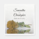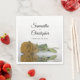 Esses bonitos guardanapos de casamento vão adicionar estilo e classe à sua recepção, janto de ensaio ou outro evento relacionado ao casamento. Eles apresentam uma design simples, mas elegante e romântica, com um solteiro de ouro, ocre, ou rosa amarelo-mostarda, que se reflete numa piscina de água com ondas e ondulações. Acima do rosa estão os nomes do casal e da data do casamento.