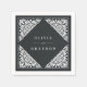 Projetados para combinar nossa coleção de casamento Beaux Arts no Charcarboneto, esses elegantes guardanapos deco de arte apresentam seus nomes em um fundo preto e branco, adornada com bordos no estilo branco de papel picado nos cantos.