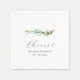 Estes guardanapos de casamento apresentam um simples ramo de rosmaninho a aquarela com a palavra "Cheers" na tipografia da moda. Use os campos modelo para adicionar seus nomes e data de casamento ou texto personalizado. Para ver mais decorações de casamento apressadas visite www.zazzle.com/dotellabelle Arte aquática e design por Victoria Grigaliunas