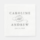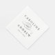 Um guardanapo clássico de casamento com os nomes dos casais e um roteiro elegante de caligrafia e com data do evento.