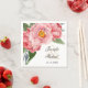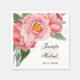 Peônias elegantes e românticas, cor-de-rosa, com sutis folhas verdes a cores-d'água, são apresentadas nesta adorável design de guardanapo de coquetel moderno. Adequado para casamentos, aniversários, recepções e outras ocasiões em qualquer estação, basta inserir seus detalhes em vez do texto de amostra mostrado. Uma coleção de produtos de casamento correspondentes disponíveis nesta design.