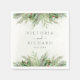 Bonitos guardanapos de casamentos com ilustrações botânicas a aquarela pintadas manualmente de verde-inverno, pinheiro e ramificações, cones e groselhas. Escolha perfeita para casamentos temáticos de inverno ou Natal.