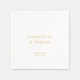 Adicione um toque moderno de elegância à sua celebração de casamento com estes guardanapos de casamento brancos personalizados. Apresentando um design minimalista com tipografia limpa e seus nomes e data personalizados, eles são perfeitos para recepções, chás de panela, jantas de ensaio ou festas de noivado. Disponível em 14 cores impressionantes para combinar com qualquer tema de casamento, de neutrais de eterno a matizes em negrito. Impressos em guardanapos de qualidade superior, eles trazem estilo e função à sua configuração de mesa. Personalize o seu hoje e impressione seus convidados com detalhes atenciosos!