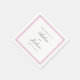 Esses guardanapos de casamentos apresentam uma simples borda de linhas mestiças cor-de-rosa que enquadram elegantes e fáceis de personalizar nomes de casais e textos de datas de casamento com muito espaço branco leve e arejado para aquele olhar sofisticado em linha com o novo estilo tradicional do milênio.