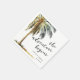Os guardanapos de casamento de destino de verão com palmeiras tropicais, o ditado "a aventura começa", os nomes noiva/noivo e a data do casamento.