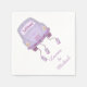 Este é um bonitinho guardanapo de papel de recepção de casamento, com uma imagem de três latas de estanho à volta de um carro violeta roxo que tem um sinal de "Recem casados" na janela traseira. Abaixo estão a noiva e os nomes do noivo em violeta correspondente. Eles vão trazer um sorriso! *O Clip art usado neste design é protegido por direitos autorais pela Encore Software, Inc., que permite o uso a seus licenciadores. Todos os direitos reservados.