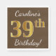 Guardanapo De Papel Castanho, Faux Dourado 39º Aniversário + Nome Pers