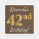 Guardanapo De Papel Castanho, Faux Dourado 42º Aniversário + Nome Pers