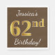 Guardanapo De Papel Castanho, Faux Dourado 62º Aniversário + Nome Pers