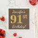 Este simples design de guardanapo de papel apresenta uma mensagem como "Aniversário de 91ruas de Jennifer!", com a "91ruas" a ter uma aparência falsa de ouro, sobre um fundo castanho. O nome pode ser personalizado. Pode ser usado em uma festa de aniversário para alguém que comemora seu 90º aniversário. [~Z0000082]