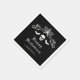 Adicione estilo assustador à sua mesa de Halloween com estes guardanapos de papel preto e branco. Apresentando uma silhueta de crânio arrojada, morcegos voadores e uma decoração florescem junto com uma área de texto personalizável onde você pode adicionar seu nome de partido. Perfeito para completar um cenário festivo de mesas com temas góticos para as celebrações do Dia das Bruxas.