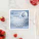Guardanapos de papel com um céu de fantasia mágico com nuvens azuis e uma lua grande e bonita. 2 cisnes brancas voando juntas.