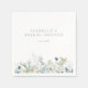 Guardanapos de chá de bebê com flores em aquarela azul e verde gelado.
