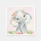 Guardanapos de chá de bebê de elefante menina fofa com adorável elefante menina com flores em um lindo fundo rosa e dourado. Estes guardanapos de chá de bebê de elefante podem ser personalizados com texto.